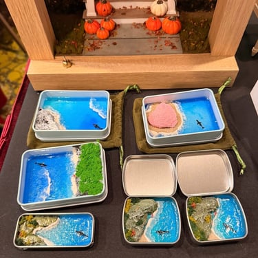 On our table we displayed several of our handmade creations. We had our tiny lake diorama boxes, small peaceful scenes that looked like little worlds frozen in time. We also brought different styles of keychains, perfect for people who wanted to carry a tiny piece of art with them. One of our favorites was our mini boutique clothing store which it is actually “Not That Mini”.